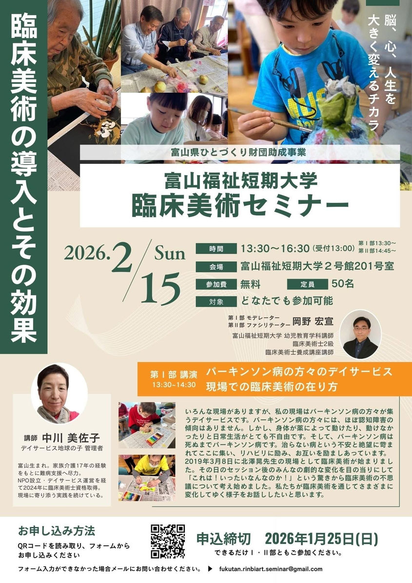 2025年2月15日(日)臨床美術セミナーが射水市の富山福祉短期大学で開催されます。