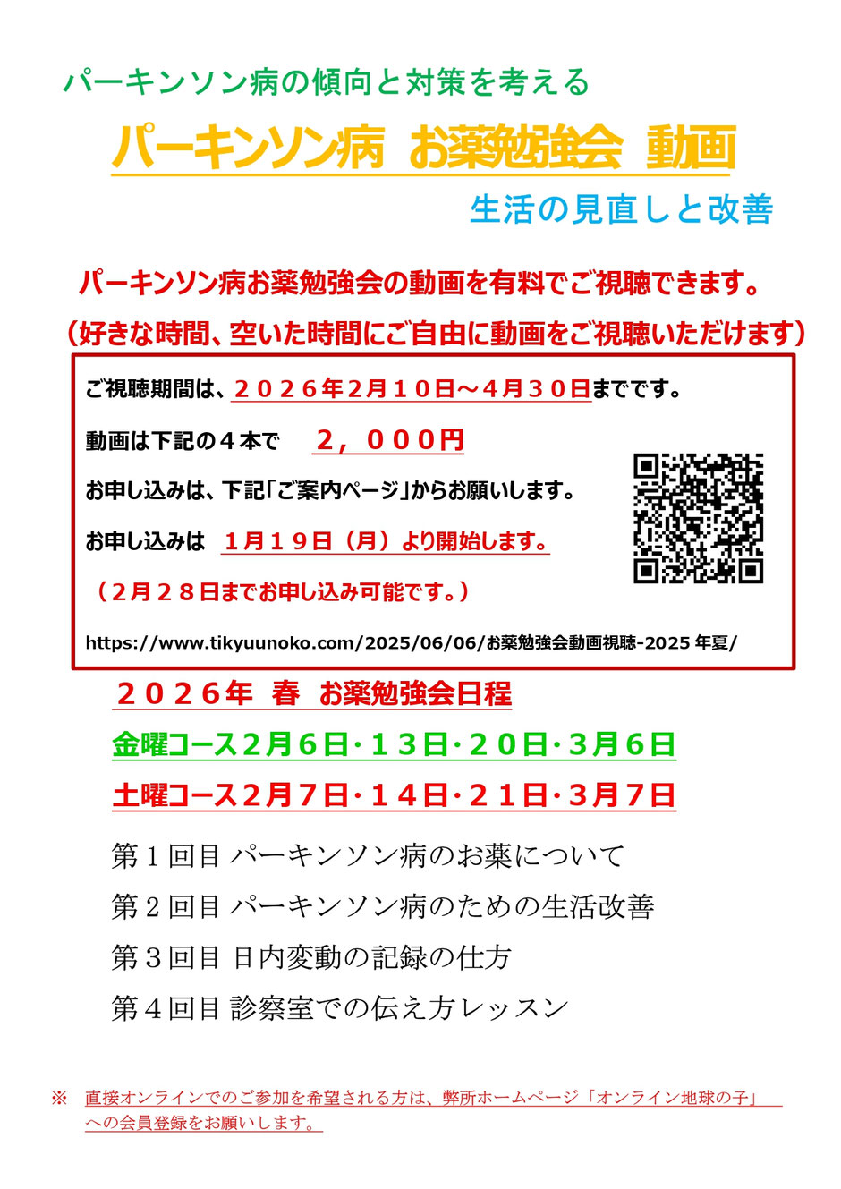 お薬勉強会(第1回目から第4回まで)の動画を有料でご視聴できます。